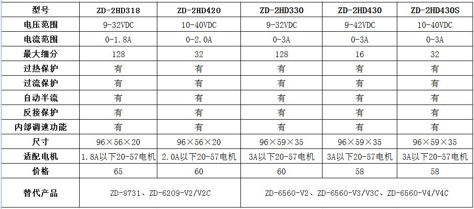 ZD-2HD318高性能两相步进电机驱动器具有高集成度、高可靠性;接口采用高速光耦隔离;****输出电流1.8A;****输入电压:DC 32V(峰值);短路、过流、过热保护功能;内部每秒0-10K脉冲,实现简单控制;高细分,****支持128细分设定。