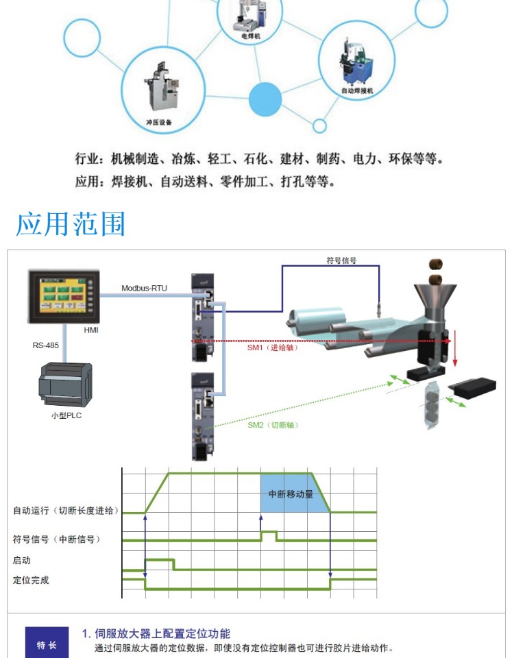 一、 控制精度 对于两项混合式步进电机步距角一般为3.6度、1.8度,也有一些步进电机随着性能的提升步距角更小。而交流伺服电机的控制精度由电机轴后端的旋转编码器保证。对于带标准2500线编码器的电机而言,由于驱动器内部采用了四倍频技术,其脉冲量为360/10000=0.036度,其步距角为3.6度的步进电机的百分之一。 二、 运行性能 步进电机的控制方式为开环控制,启动频率过高或负载过大,易出现丢步与堵转的现象,停止时转速过高易出现过冲的现象,所以为保证其控制精度,应处理好升、降速问题。交流伺服驱动系统为闭环控制,驱动器可以直接对电机编码器反馈信息进行采样,内部构成位置环和速度环,一般不会出现步进电机的丢步或过冲的现象,控制性能更为可靠。 三、 速度响应性能 步进电机从静止加速到工作转速一般情况需要200-400毫秒。交流伺服系统的加速性能较好,从静止加速到其额定转速仅需要几个毫秒,可以用于要求快速启停的控制场合。 综上所述,伺服电机在许多性能方面都优于步进电机,但在一些要求不高的场合也经常使用步进电机来做执行电机。