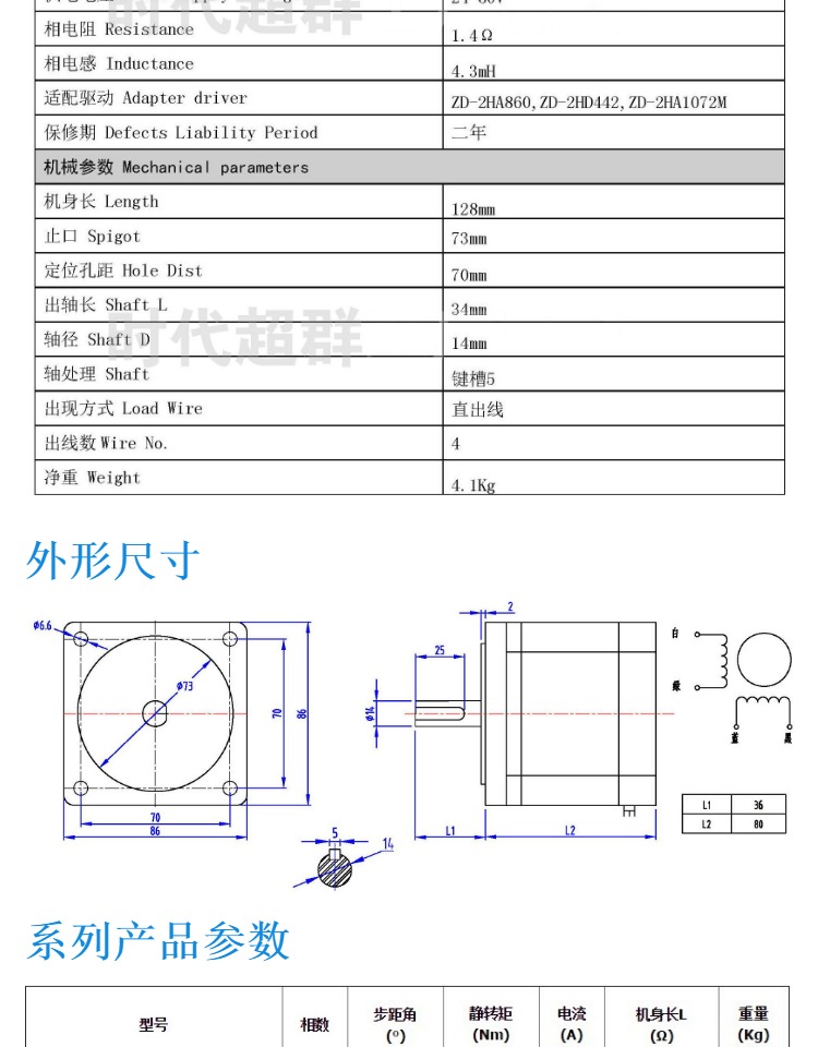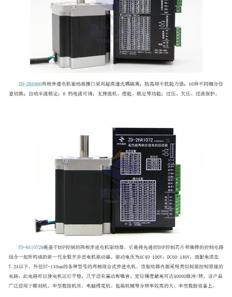 1、三相步进电机与两相电220伏、三相电380伏之间的误区 步进电机按照内部构造不同,可以分为两相步进电机、三相步进电机、五相步进电机,由于五相步进电机成本高,市场上很少出现,所以常用的就是两相步进电机和三相步进电机。很多客户刚接触步进,经常会误认为两相步进电机就是220伏供电,三相步进电机就是380伏供电,其实是错误的。我们说的两相三相步进电机是根据步进电机内部构造极对数来命名区分的,与220伏380伏供电没有任何关系。 2.步进电机功率与扭矩之间的误区 步进电机一般在较大范围内调速使用,通常只用力矩来衡量,而且速度越快力矩就会越小,其功率是变化的,所以步进电机没有功率这一说法,只说保持转矩,有些客户为了取代以往的普通的电机,想选个和以前大约差不多的功率的电机,这里有这样一个大约的公式。 力矩与功率换算如下: ∵P=Ω.M Ω=2П.n/60 ∴P=2П.n.M/60,≈n.M/10 功率≈转速*转矩/10 其中P为功率,单位为瓦,Ω为每秒角速度,单位为弧度,n为每分钟转速,M为力矩,单位为N.m。 3.步进电机供电的误区 步进电机如果正常运转,必须与步进电机驱动器和发脉冲的控制器同时使用,而步进电机是不需要直接接电源的,步进电机的出线直接和驱动器连接,我们通常所说的供电电压是指给驱动器的供电电压,有很多客户希望直接用220V的电压来供电,方便快捷,但是不是所有步进电机都能实现,一般两相大功率的110步进电机所配驱动器ZD-2HE2254是可以直接220V供电的,其余的小功率的电机驱动器都是要配一个开关电源或者变压器的。