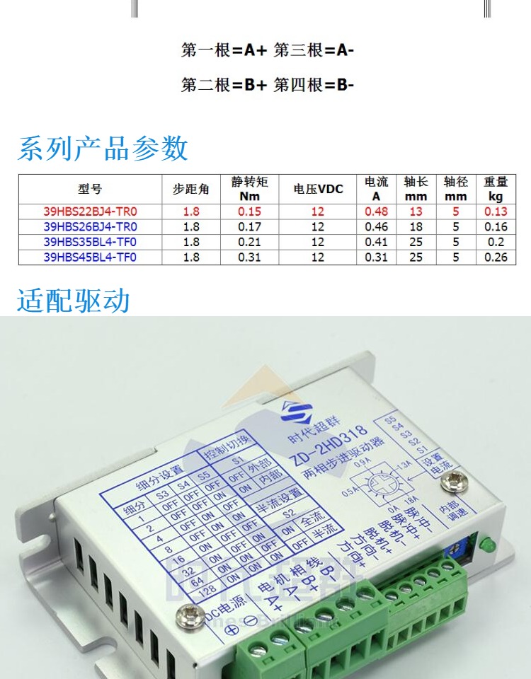 步进电机作为一种控制精密位移及大范围调速专用的电机, 它的旋转是以自身固有的步距角角(转子与定子的机械结构所决定)一步一步运行的, 其特点是每旋转一步,步距角始终不变,能够保持精密准确的位置。所以无论旋转多少次,始终没有积累误差。由于控制方法简单,成本低廉,广泛应用于各种开环控制。步进电机的运行需要有脉冲分配的功率型电子装置进行驱动, 这就是步进电机驱动器。它接收控制系统发出的脉冲信号,按照步进电机的结构特点,顺序分配脉冲,实现控制角位移、旋转速度、旋转方向、制动加载状态、自由状态。控制系统每发一个脉冲信号, 通过驱动器就能够驱动步进电机旋转一个步距角。步进电机的转速与脉冲信号的频率成正比。角位移量与脉冲个数相关。步进电机停止旋转时,能够产生两种状态:制动加载能够产生****或部分保持转矩(通常称为刹车保持,无需电磁制动或机械制动)及转子处于自由状态(能够被外部推力带动轻松旋转)。步进电机驱动器,必须与步进电机的型号相匹配。否则,将会损坏步进电机及驱动器。
