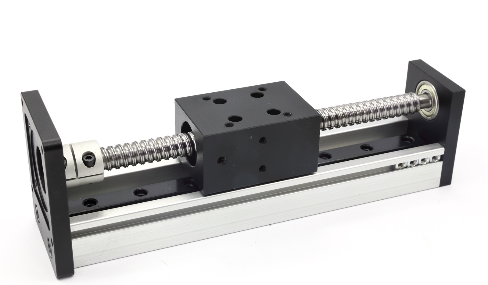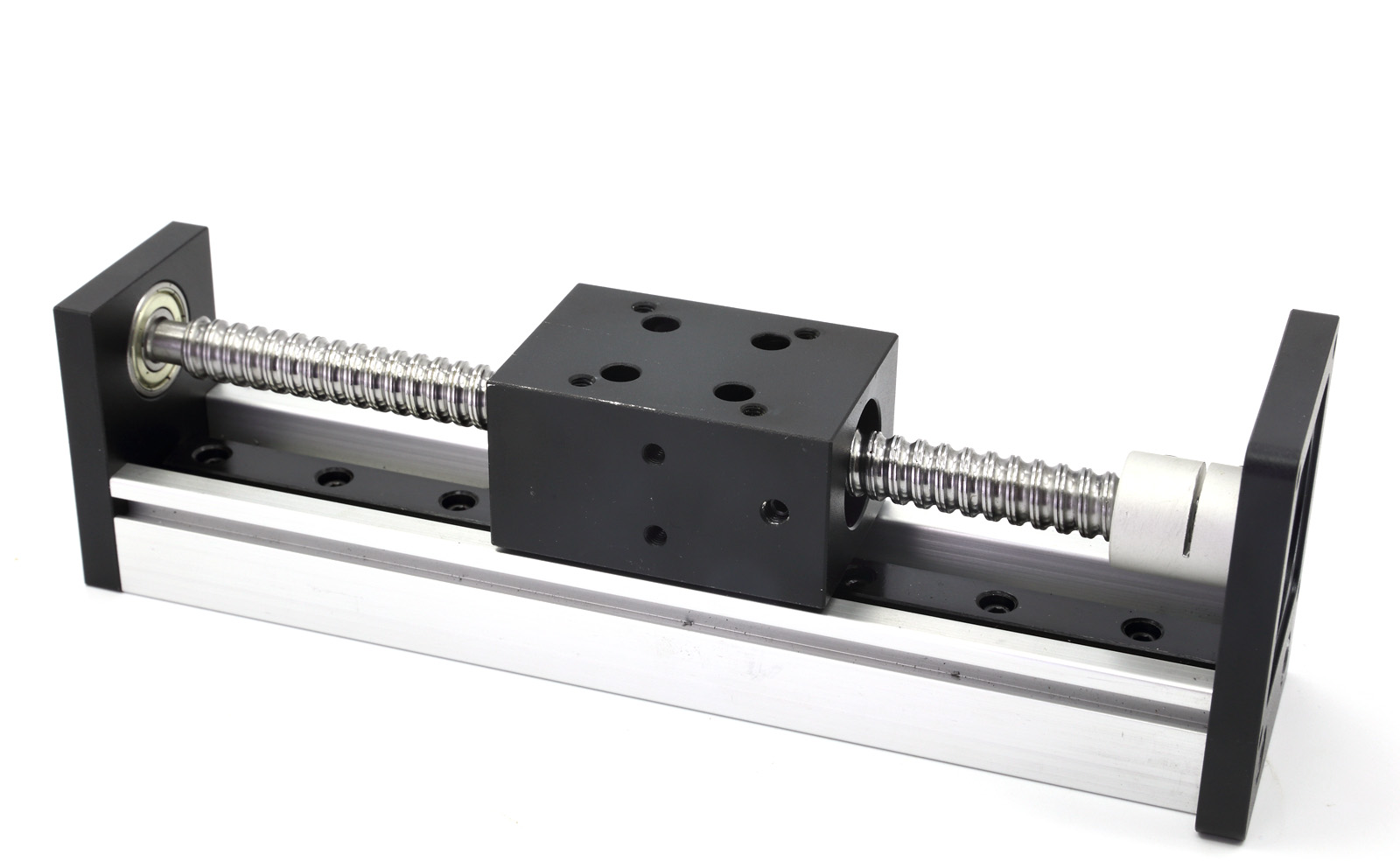 水平载重30Kg,垂直载重10KG,有效50mm-1500行程,定位精度0.03MM。****可到60mm/s;可任意组装,接收非标定制。可做成1605、1610规格的滚珠丝杠。上图为CBX1204-400A-K,有效行程400MM。滑块孔位根据客户具体要求做了特殊处理,来满足客户的安装需要。