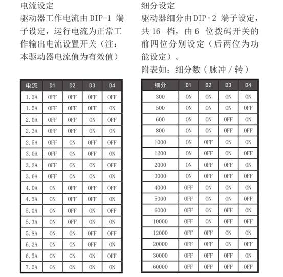 ZD-3HE2270M/ ZD-3HE2270MH产品特点: 单电源输入,电压范围:AC110V ~ 220V ·驱动电流 1.2A/ 相到 7.0A/ 相分 16 档可调 ·设有 16 档等角度恒力矩细分,****分辨率 60000 步 / 转 , 其它细分可定制完成 ·****反应频率可达 200Kpps ·步进脉冲停止超过 100ms 时,线圈电流自动减到设定电流的 一半,有效降低电机发热 ·接口信号光耦隔离 ·内部强电、弱电光耦隔离 ·信号电平:5V ~ 24V 兼容 ·工作温度:-30℃~ 85℃ ·适配电机:三相 57、86、110、130、150 系列高压电机 ·相位记忆功能(注:输入停止超过 3 秒后,驱动器自动记忆 当时电机相位,重新上电或 MF 信号由低电平变为高电平时, 驱动器自动恢复电机相位)。 ·带电机电感量调节功能,适配电机发挥****效能 电流及细分设置: