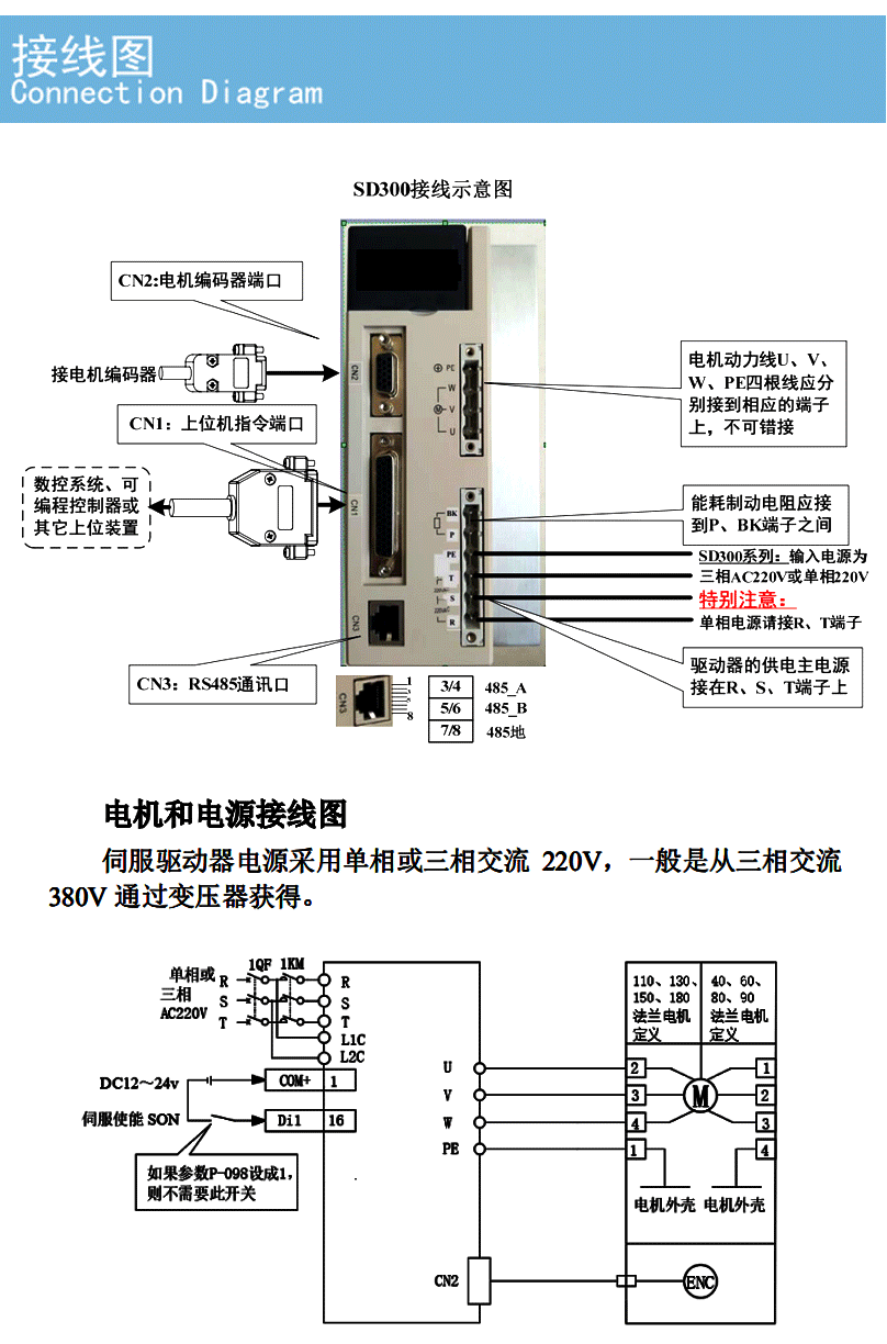 SD系列220V三相高压交流伺服电机驱动套装750W/1KW/1.5KW/2KW/3.8 下面简单的进行一下讲解: