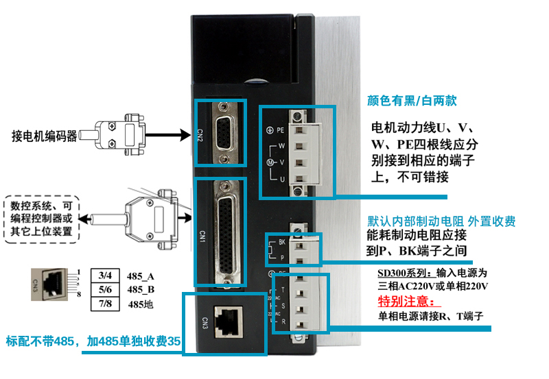 产品包装清单:电机一台、驱动器一台、电机线三米、编码器线三米、信号线一米