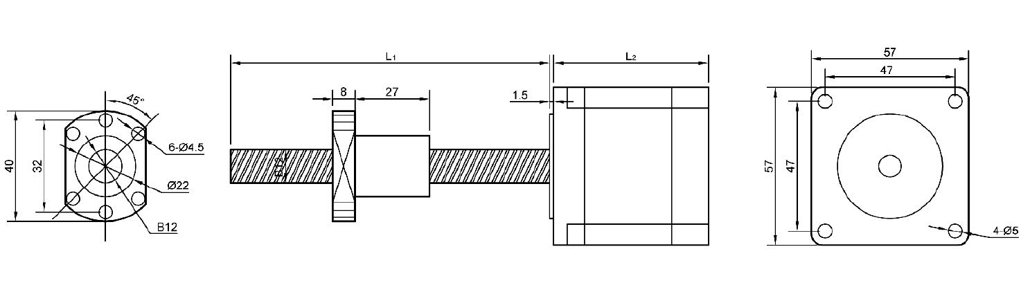 可加工42步进电机、57步进电机,丝杠长度可从50mm-500mm长。 下面介绍一款双出轴直线步进电机